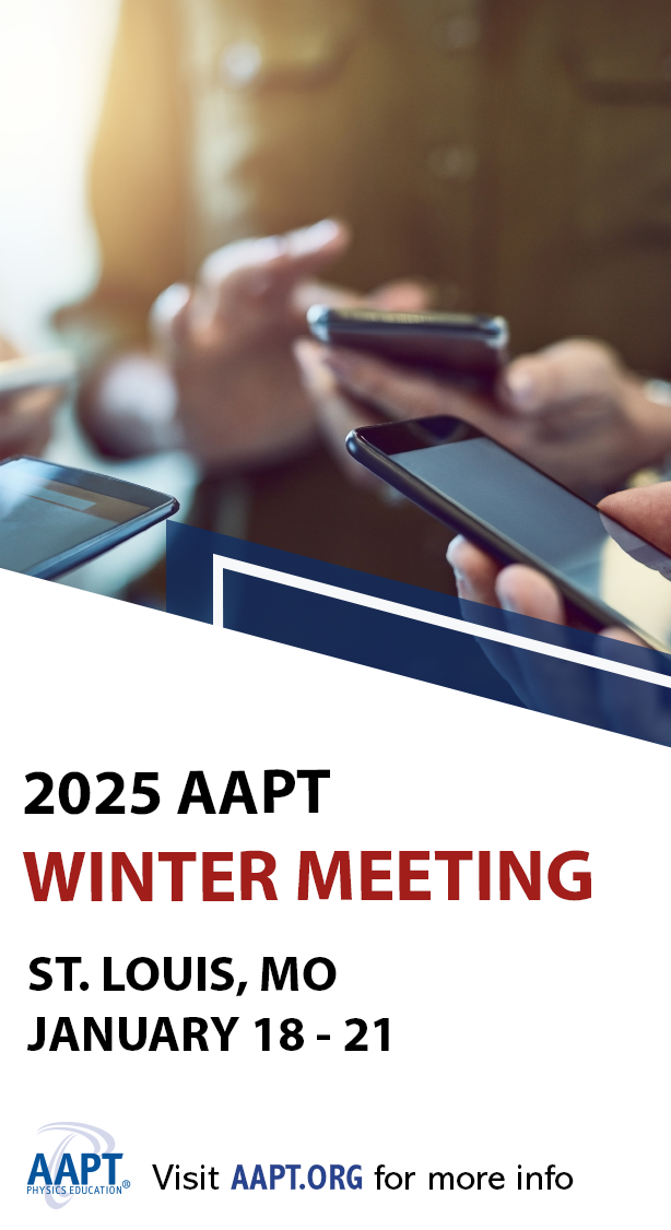 Links to non-AAPT sites are intended as a service to readers interested in AAPT, physics, and education. These links do not reflect an endorsement of any content or product. Also, due to the evolving nature of websites, some external links referenced in the eNNOUNCER may expire over time.