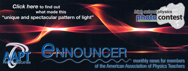 AAPT's eNNOUNCER is a service to members of the American Association of Physics Teachers and is produced by the AAPT Executive Office. Tell us what you think of this month's issue. Take this survey.